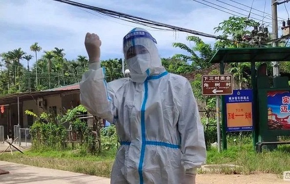 風(fēng)雨無阻,用生命守護(hù)生命。8月25日,臺風(fēng)“馬鞍”來襲,提前接到任務(wù)通知的劉靈,為了順利完成萬寧第18輪全員核酸檢測工作,一大早她就穿上雨衣騎著電車義無反顧地沖向抗疫一線,她和另一名醫(yī)護(hù)人員一起冒著風(fēng)雨、無懼艱險,堅持上門入戶為封控區(qū)域居民核酸采樣,確保不漏一人,不落一戶,在戰(zhàn)“疫”一線用柔弱的身軀扛起抗疫重任,用生命守護(hù)生命,只為早日取得抗疫勝利。