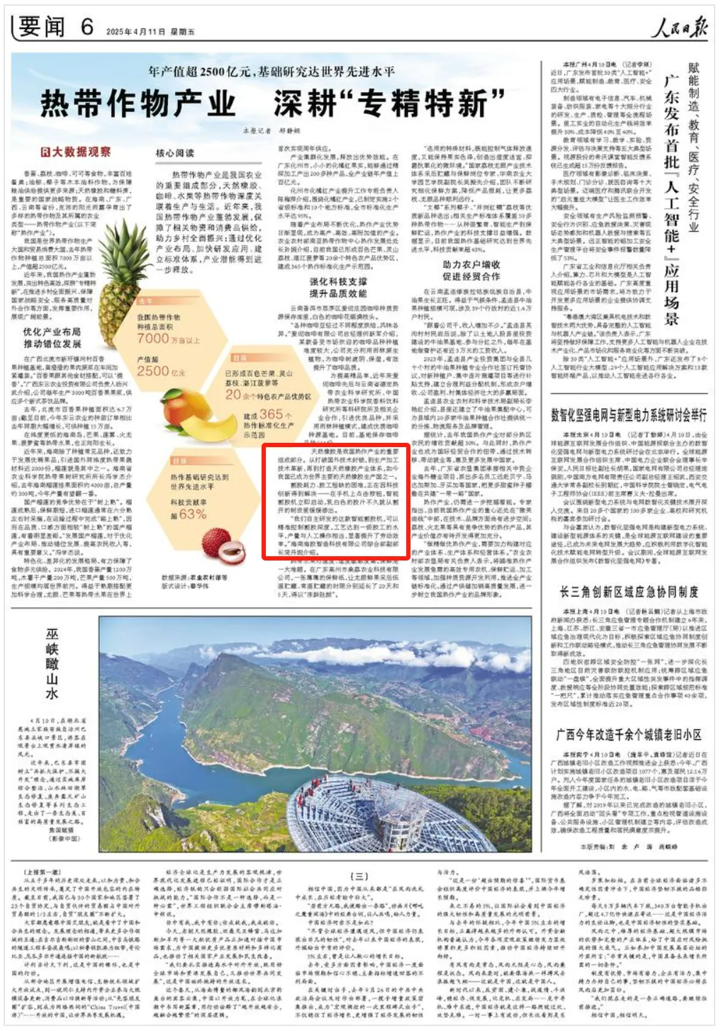 4月11日,《人民日?qǐng)?bào)》要聞版刊發(fā)《熱帶作物產(chǎn)業(yè) 深耕“專(zhuān)精特新”》,重點(diǎn)提及海南橡膠的智能割膠機(jī)研發(fā)成果